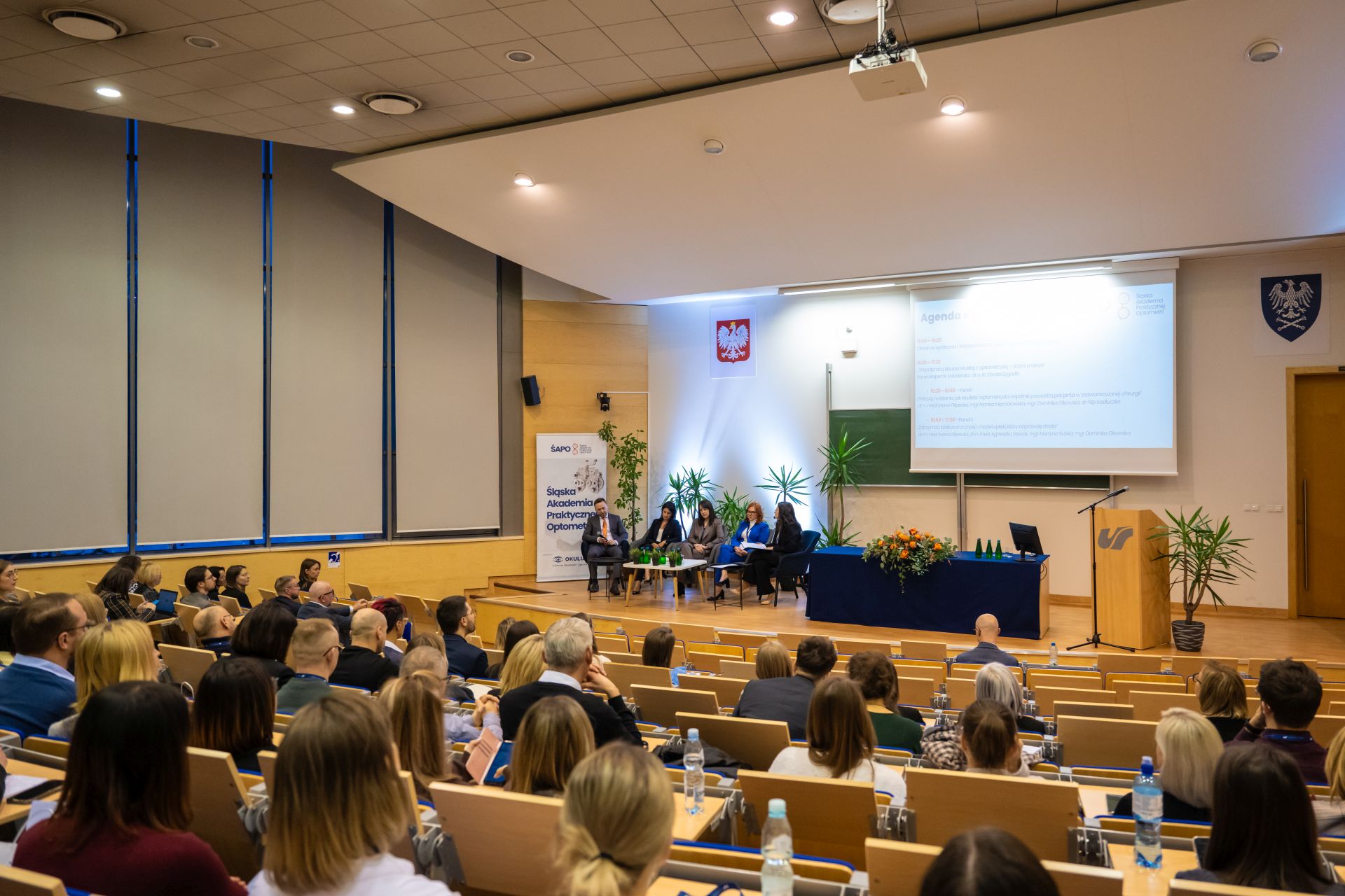 Inauguracji Śląskiej Akademii Praktycznej Optometrii towarzyszyła otwarta konferencja szkoleniowa zorganizowana na Uniwersytecie Śląskim. Wydarzenie, które odbyło się na Wydziale Nauk Ścisłych i Technicznych w Chorzowie, zgromadziło blisko 100 optometrystów z całej Polski. W trakcie dwóch paneli dyskusyjnych, z udziałem 11 ekspertów, poruszono m.in. temat dynamicznie rosnącej skali krótkowzroczności w Polsce oraz konieczności ścisłej współpracy okulistów i optometrystów w przeciwdziałaniu temu problemowi. Całości towarzyszyły również otwarte, praktyczne szkolenia z zakresu ortokorekcji i kontroli krótkowzroczności oraz dopasowania soczewek multifokalnych.